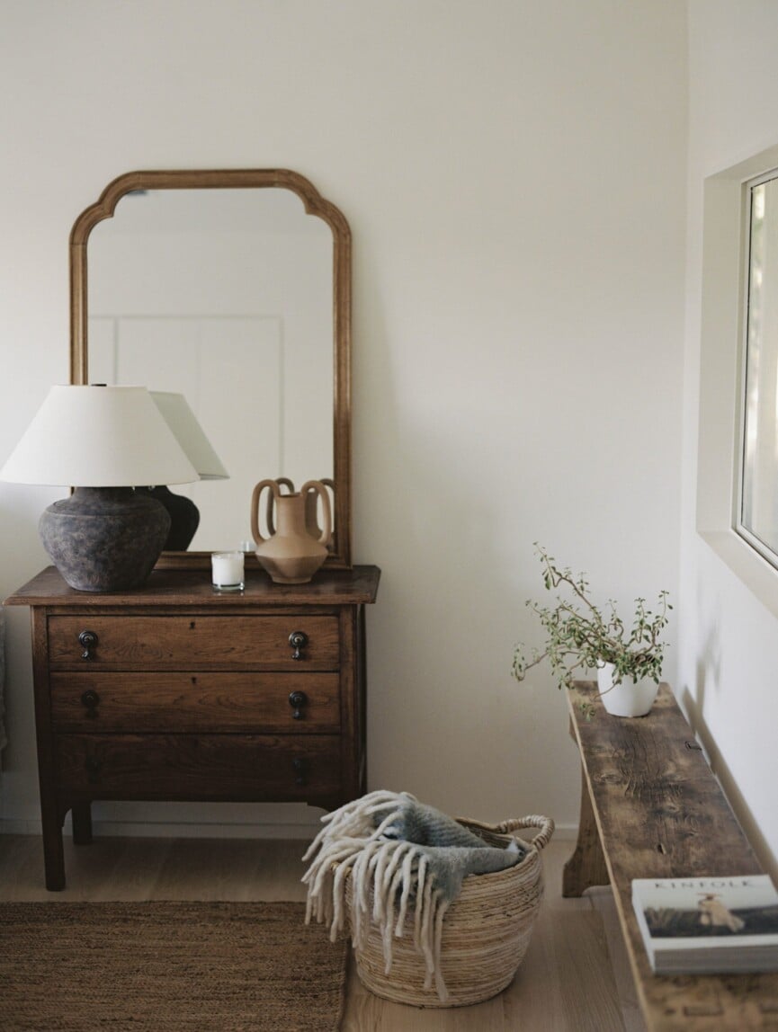 Paint finishes can also create calm, especially when you’re working with warm neutrals. “You’ll see higher gloss paints tossing sunlight back into rooms, particularly on warm paint colors like Broccoli Brown by Farrow and Ball and Creamy by Sherwin-Williams,” Fife Bever adds.