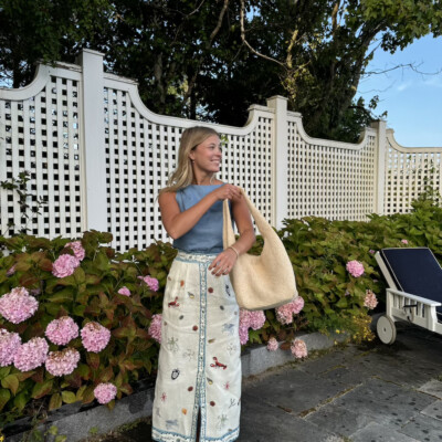I wear a lot of athleisure, and my daily uniform often consists of head-to-toe Stella McCartney: sweatpants, jumpsuits, and trainers. I love her designs because they’re sustainable and super comfortable.